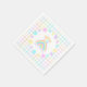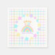 This charming little girl's rainbow birthday party napkin design features a hand drawn rainbow cake with lit candles in the centre, around the outside is a border of rainbow checks and pastel stars. You can customise the text inside to match your occasion. See the whole matching collection.
