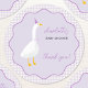 Add a sweet finishing touch to your party favours with this adorable thank you sticker featuring a hand-painted goose, wavy-edged frame, and pastel lilac gingham background. Designed to coordinate with our Little Goose baby shower collection, it's perfect to welcome little girls and boys. Personalise with your own message!