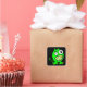 Funny looking little devil cartoon in neon green. This little guy has a big round face. One eye is bigger than the other making him look googly-eyed. He has some sharp fangs and a cute little devils tail.
