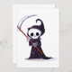 Want a cool looking if not a little scary design that is perfect for halloween or the likes then check out this little grim reaper. The face is scary and awesome alone the rest. The little grim reaper is standing in a robe holding an axe. This little grim reaper design looks great on these invitations