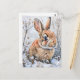 Little Hare in Snowy Field. Rabbit Bunny Postcard