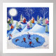 Little Hockey Players Ice Skate Winter Folk Art Poster