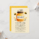 Celebrate the mom-to-bee with this cute "little honey" baby shower invitation featuring a light yellow background with a honey jar and bees, and flowers. Personalize it for your needs. You can find matching products at my store.