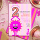 Little Hot Pink Monster 2nd Birthday Girl Cute Invitation
