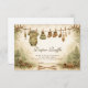A cozy woodland baby shower design inspired by a gentle forest adventure. Illustrated with rustic greenery, pinecones, and a charming “little hunter” clothesline detail, this storybook-style layout feels warm, nostalgic, and nature-loving. Perfect for parents who love the outdoors, woodland themes, or rustic nursery aesthetics.