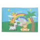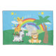 Add a cute colourful jungle theme to the bedroom or nursery of your little boy or girl with this adorable custom safari pillow case. Pillow case has a zebra, giraffe, elephant, and lion, all near a palm tree, a rainbow, and bright sunny stars. The name of your little kid completes the look.