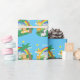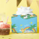 Add a cute colourful jungle theme to the birthday party or baby shower of your little boy or girl with this adorable custom safari wrapping paper. Gift wrap has a pattern of zebra, giraffe, elephant, and lion, all near a palm tree, a rainbow, and bright sunny stars. The name of your little kid completes the look.