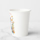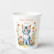 A sweet little striped kitten surrounded by pink and coral flowers watercolor illustration birthday party personalised paper cups for a little girl.