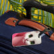 Of of the two luggage tags have some scratch on it.