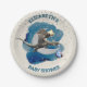 Little Knight Dragon Silver Star Baby Shower Paper Plate