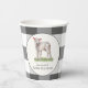 This cute  "a little lamb is on the way" baby shower paper cup features a little lamb on a cream white background with black gingham/bufflalo check/plaid patterns. Personalise it for your needs. You can find matching products at my store.