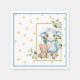 Cute paper napkin to utilise at an upcoming baby shower that features a little lamb with blue hues standing next to a favourite teddy bear.