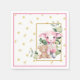 Colourful paper napkin for an upcoming baby shower that depicts a little lamb with pink hues with her favourite teddy bear.