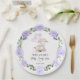 Little Lamb Purple Floral Greenery Welcome Baby Paper Plate