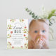 This cute girl's 1st birthday photo invitation features a white background with ladybugs and green leaves. The reverse side features a light sage green background with white polka dot patterns. Personalise for your needs. You can find more matching products at my store.