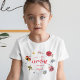 Cute t shirt for your girl's ladybug theme birthday party! Illustration of ladybugs and wildflowers. The text says "This little lovebug is turning X."