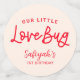 Cute party decor confetti for a ladybug theme girl's 1st birthday party. The text says "our little lovebug."