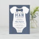 Invite attendees to your shower with this classic little man themed baby shower invitation! Available in many colours and patterns.
