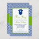 Little Man Chevron Blue Green Baby Shower Invitation