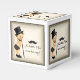 Little man baby shower boxes with moustache and adorable baby boy in dapper black tie, top hat and shoes on a black and tan background. You can personalise by adding text in the font style and colour of your choice. You can also change the background colour.