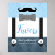 I love this sweet little man baby shower theme favours sign featuring a moustache, bow tie, and suspenders in a baby blue and navy blue colour. Matching invitation and decor in store.