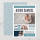 Affordable custom printed baby birth announcement photo cards. This modern minimalist design features a 3 photo collage layout with blue colour blocks which can be customised by changing the background colour to any colour. Personalise it with baby's name and birth stats and your photos. Reverse side features a cute handsketched pattern or use the space to add additional photos and text if needed. Click Customise It to choose any background colours, add more photos and customise text fonts and colours to create a unique one of a kind baby birth announcement for your newborn.