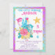 Girly purple, turquoise and gold Little Mermaid under the sea birthday party invitation. Easily add the name of the birthday girl, and the date, time and address of the birthday party.