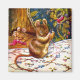 An adorable illustration of a mouse mending a quilt. Done in rich, cosy colours of dark blue, cream, browns, pink and green. Isn't she sweet!
