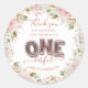 Little Miss Onederful thank you stickers. So easy to edit the template to your own name. Pretty watercolor florals with ONE spelt out in balloon letters. Little Miss Onederful 1st Birthday Thank you Classic Round Stickers.