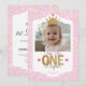 Celebrate her first birthday in style with this glittery pink and gold invitation, perfect for your little princess.