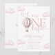 This charming first birthday party invitation features a cute pink hot air balloon and clouds, along with elegant script typography. Designed by Thisisnotme©