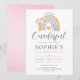 Cute whimsical little miss ONEderful watercolor boho rainbow girl's 1st birthday invitation. Pink mustard blue hues.