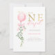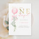 Little Miss Pink Bow Balloon 1st Birthday Party Invitation
