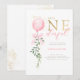 Celebrate your little girl's first birthday in sweet, whimsical style with this Little Miss Onederful birthday invitation! Featuring a charming pink watercolor balloon forming the "O" in One, this design is paired with elegant faux gold foil typography for a modern yet playful look. Delicate greenery and a girly pink bow hang gracefully from the balloon, while scattered faux gold confetti adds the perfect finishing touch to this minimalist and feminine layout.