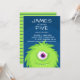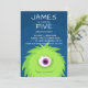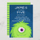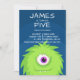 A cute furry little monster boys birthday party invitation. Bright lime green and blue.