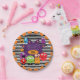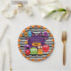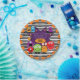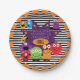 Little Monster Birthday paper plates, colourful, fun, cute, perfect for kids who love monsters and are having a monster theme birthday celebration! Features several silly monsters on a black and white striped background and a decorative ring of orange along the plate's edge. We have the matching Little Monster Birthday invitations!