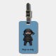 Adorable chubby yet fearsome looking little ninja is dressed in black outfit and carrying katana - traditional Japanese sword.