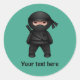 Adorable chubby yet fearsome looking little ninja is dressed in black outfit and carrying katana - traditional Japanese sword.