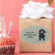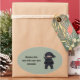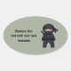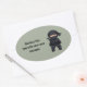 Adorable chubby yet fearsome looking little ninja is dressed in black outfit and carrying katana - traditional Japanese sword.