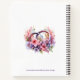 As you begin to plan for your wedding, keep your notes and thoughts in this notebook. For those who don't want a big binder, this will work for you. If you have the big binder, you may not want to carry it all the time, and you can carry this one instead. You are able to choose which lined pages you want to use. In the centre are two wedding rings resting on pink and lavender flowers. The script is in a matching purple colour, and the heart embellishments match the pink flowers. You can personalise it with you and your fiancé's names.