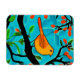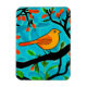 Magnet in an Art Nouveau inspired illustration of a little orange and tan bird perched on a branch, with coral orange flower buds, against a soft turquoise textured background