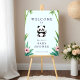 Welcome guests with this adorable Welcome Sign. Featuring a sweet baby panda alongside soft greenery accents, this charming sign sets a playful and inviting tone for your celebration. The minimalist design, with its clean background and greenery, is perfect for a modern and fresh baby shower theme. Customise it with your event details.