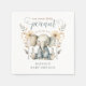 Sweet little peanut theme watercolor elephant enchanting illustration baby shower paper napkins. A delicate design adorned with the gentle strokes of watercolor, showcasing a charming elephant at its centre. This adorable creature is lovingly surrounded by an array of blossoms and lush foliage, creating a whimsical and inviting scene. The script type chosen for the a touch of whimsy, with its graceful curves and loops creating a rhythm between type and image and soft pastel colours in the imagery and typography. Perfect for a spring or summer baby shower celebration.