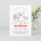 Honour the mum to be with this fresh and colourful baby shower invitation featuring a typographic layout with illustrated elephants and pops of colour.