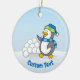 Little Penguin with Snow Balls Waving Ceramic Tree Decoration