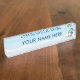 The product was just like it was in the pics, everyone at work loves it! Came on time and it was neatly packed. Bold and Clear. My name can be seen from far and it matches in color.