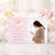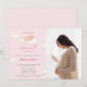 A soft and heavenly baby shower invitation featuring a sweet sleeping angel baby nestled among fluffy clouds, crescent moon, and delicate stars. Designed in gentle blush pink with subtle gold accents, this celestial invitation creates a dreamy and heartfelt atmosphere—perfect for celebrating a truly heaven-sent baby girl. A timeless and graceful choice for a memorable baby shower celebration.
