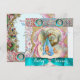 Elegant antique mediaeval parchment with colourful gem stones white pearls,pink bow and animals.Funny vintage style floral design with a baby and flying stork among the beautiful pink,gold,red roses, spring flowers and green leaves by Bulgan Lumini (c).