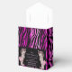Zebra animal patterns Twins Baby Shower favour boxes. Pink personalised custom vintage Princess twins baby shower thank you party favour box for baby showers for twin girls. Elegant, classy vintage princess favour box for baby showers with a cool, funky hot pink and black grunge zebra animal stripes pattern box and beautiful vintage illustrations of cute and adorable baby girls with stylish pink Princess crowns, sweet bunny rabbit slippers, pink diapers with ruffles and pink bows in their hair. With personalisable, fully customisable text. Two Little Princesses are on their way! Thank you for sharing in my day. Name of mummy to be and date. Chic, groovy, modern, trendy, glamourous, girly, fun, fashionable personalised boxes for your guests' shower favours for twin girl baby showers. If you need any assistance customising your product please contact me through my store and I will be happy to help.