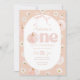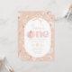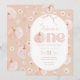 One cute pumpkin! Floral pumpkin and bow Themed 1st Birthday Invitation featuring peach background with daisies, pumpkin and cute pink bow.